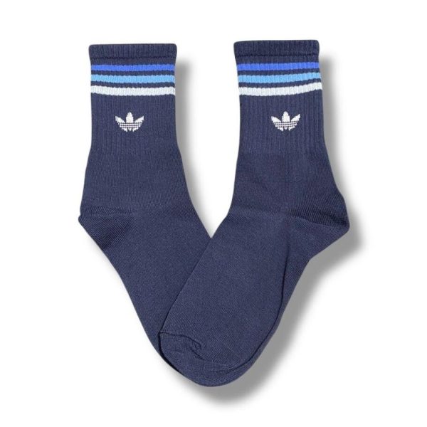 Media Caña Premium Adidas Horizontal Azul con Azul y Blanca
