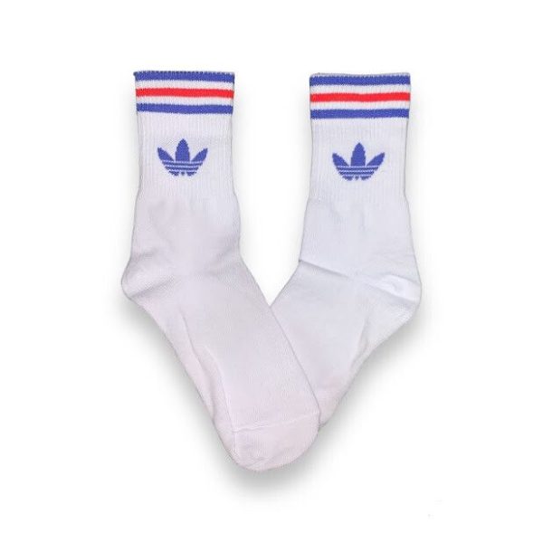 Media Caña Premium Adidas Horizontal Blanca con Azul y Rojo Solo Logo