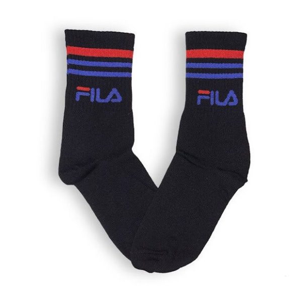 Media Caña Premium Fila Negra Retro Letras Azules