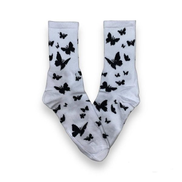 Media Caña Style Blanca con Mariposas Negra